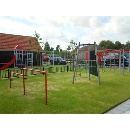Somersaults are the one of the simplest playground items for kids. Well knows from our parents and grandparents old fashioned games. Double Somersault is very simple and durable device comes from Atlantis Line. While playing on Double Somersault children can test their strength and develop gymnastic ability, motor skills and coordination. Bright red Double Somersault is a very solid and durable device. It is made of galvanized steel resistant to weather conditions. Double Somersault has a two level bars so both younger and older kids can play on it. This item does not require a safety surface, as its total height is just under one meter and it is designed for children over three years old.