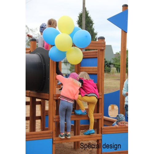 Bounty is a versatile product from Lars Laj’ s Pioneer Line. This device is perfectly suitable for any playground. This multi-functional item has a rich selection of wooden and rope ladders, two tunnels, slide, few walkways and ramps, mast, steering wheel and pirate tower on the highest platform. Your child will find here many corners and nooks ready to penetrate, which ensures endless hours of fun for a long, long time. This playing boat is made of larch wood, PE plates and some steel elements with all rounded edges to provide comfort and safety of your child. Bounty is very safe and extremely durable. This design is for all children who have 3 years old and they are ready for a good time. So let the little seafarers board to the Bounty Ship and have a wild adventure just like from Jack Sparrow's Stories.